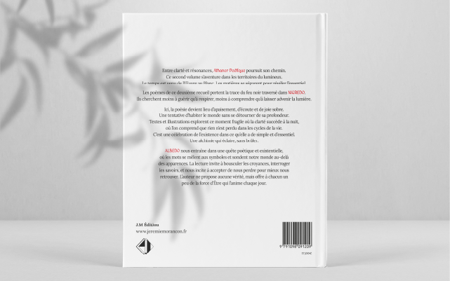 Jérémie m’a confié la mise en forme de son recueil de poèmes illustrés avec une intention claire : que la mise en page ne soit pas une simple structure, mais un souffle. Chaque mot, chaque silence, chaque espace devait trouver son rythme et sa place.